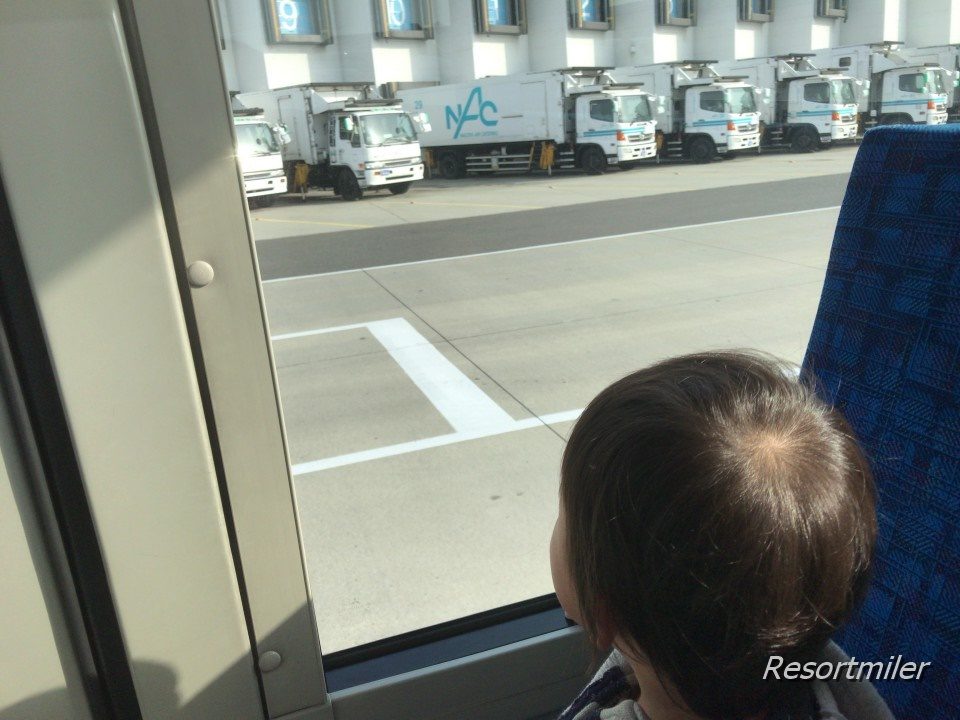 飛行機まではバス移動。バス移動はゲートの閉まるのが早いので、早めの行動が必要です。