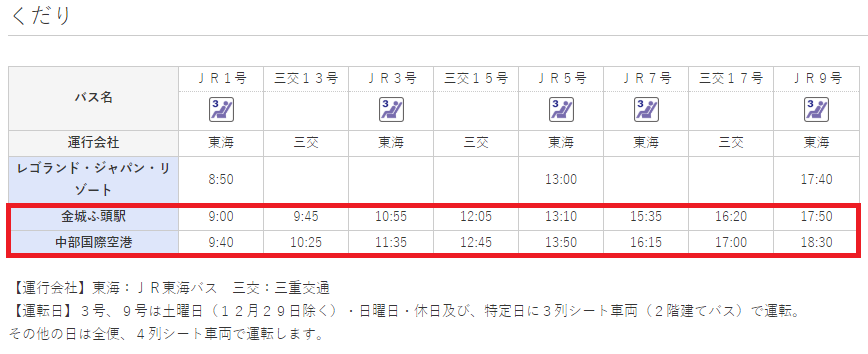 時刻表をこちらに載せますが、最新版は公式HPの時刻表でご覧ください。