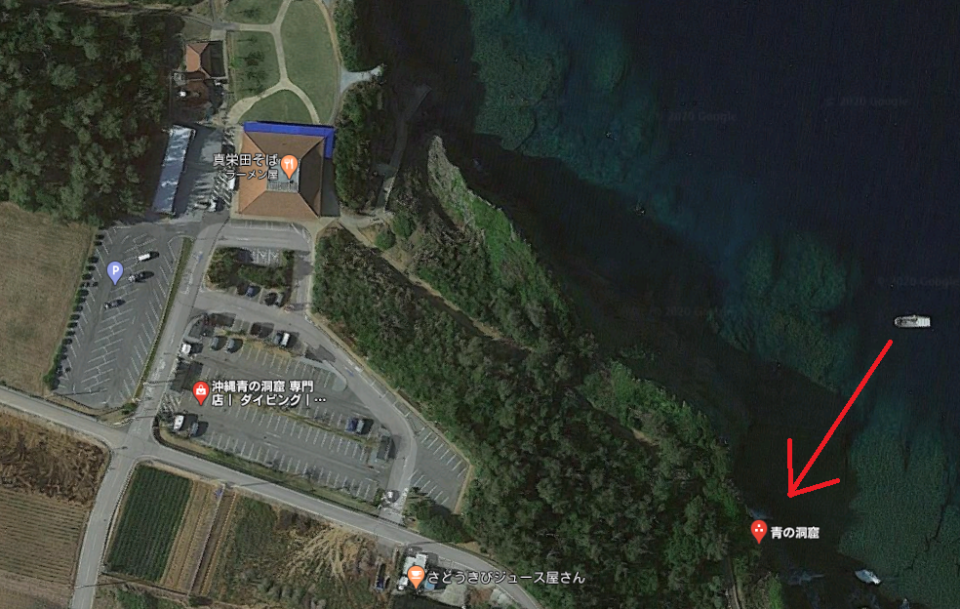 場所は国道58号線から真栄田岬方面へ向かう途中の海岸沿いにあります。