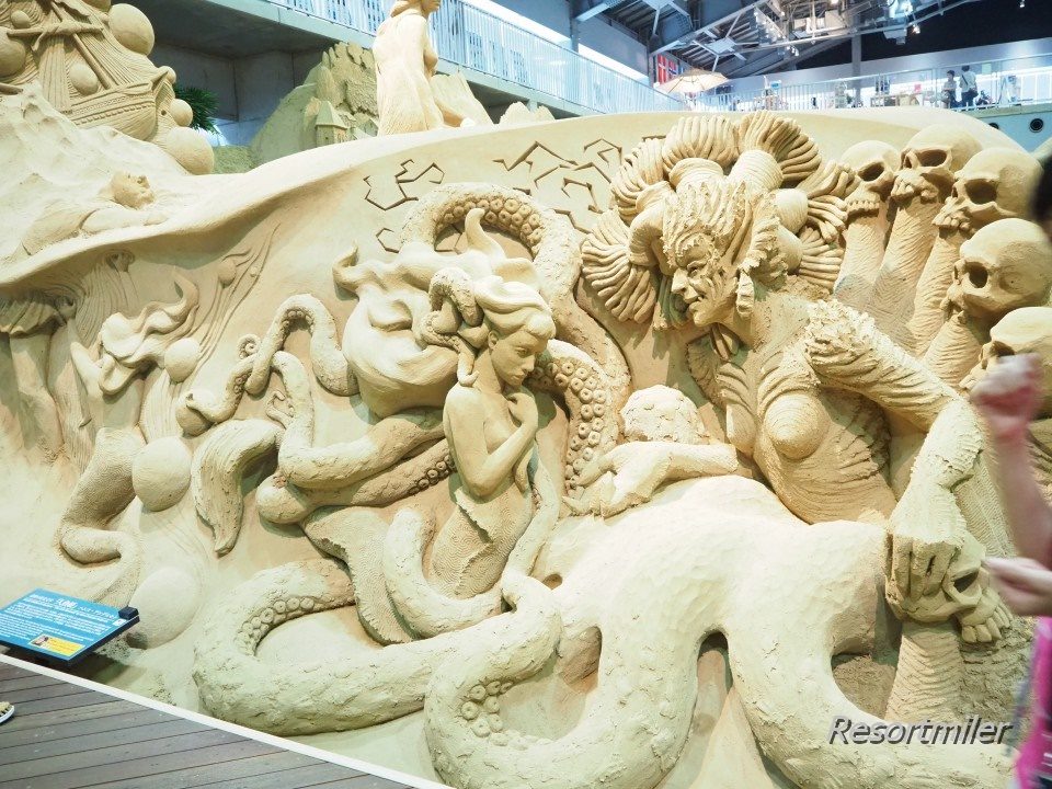 砂と雪とで材料が違いますが、砂像は雪だけで作られたさっぽろ雪まつりの雪像と同じレベルで感動を受けました。