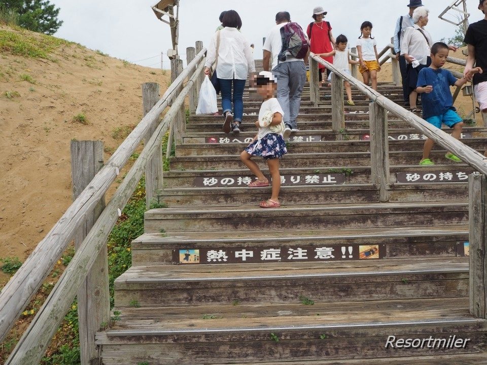 鳥取砂丘へは駐車場のある階段を登っていきます。