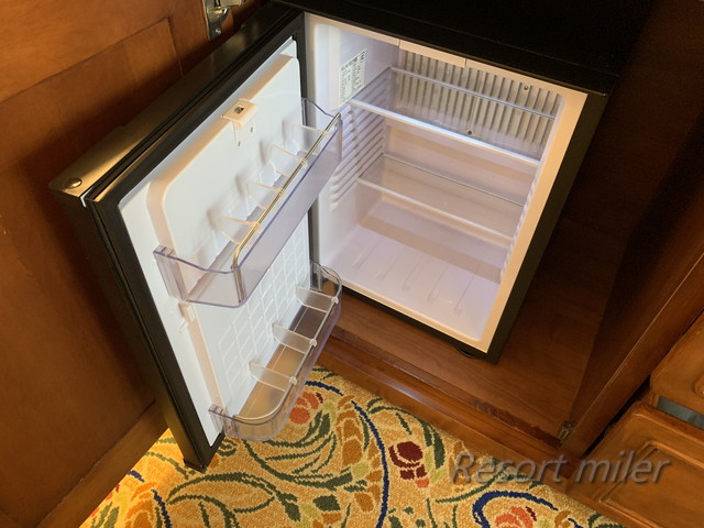 冷蔵庫は空っぽ。ミネラルウォーターやコンビニで買ったドリンクを入れましょう。