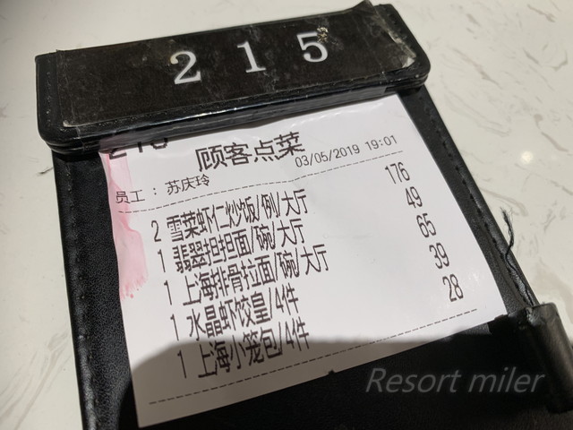 お会計は350元ほど。不要な88元のチャーハンが痛い。。。