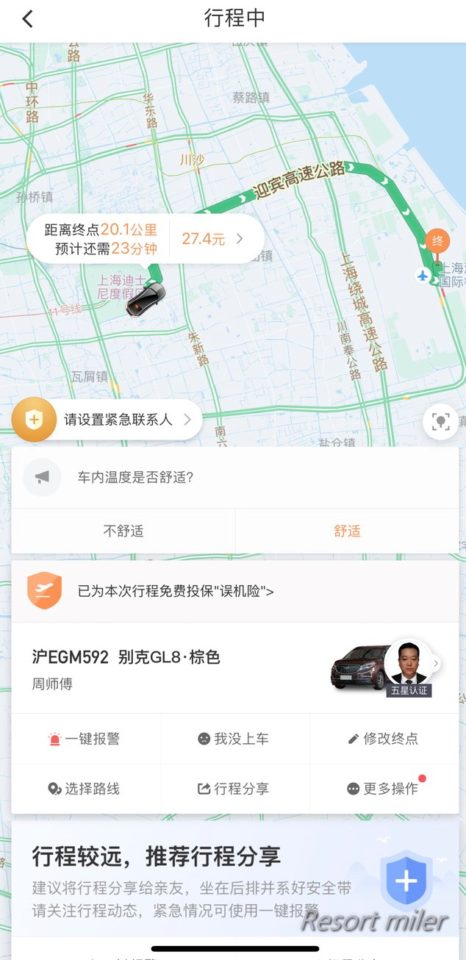 現在地、ルートはDiDiのアプリで確認できるので安心です。