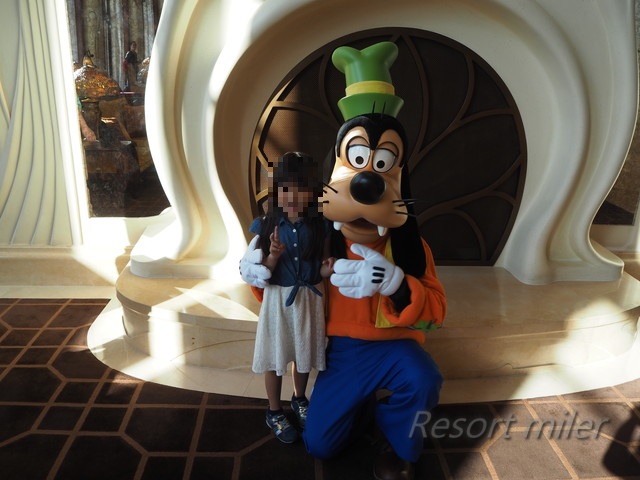 ホテルで休憩するために、15時ごろホテルへ戻ってみると、グーフィがいました。