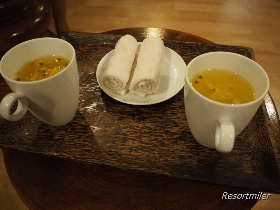 ウェイティングルームでは、冷たいお絞りと温かいレモンジンジャーを頂きました。