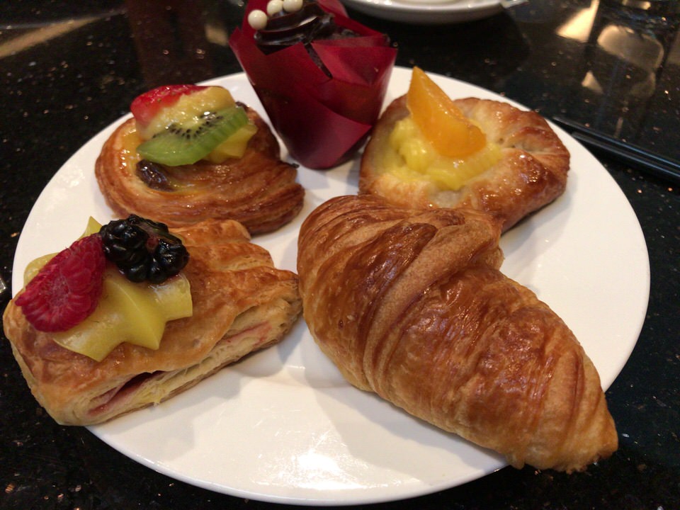 今日の朝ご飯はホテル2階にあるビュッフェです。オシャレなパンがいっぱいでした。