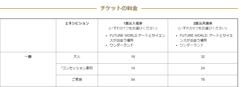 アートサイエンスミュージアムの料金は通常料金はこちら。