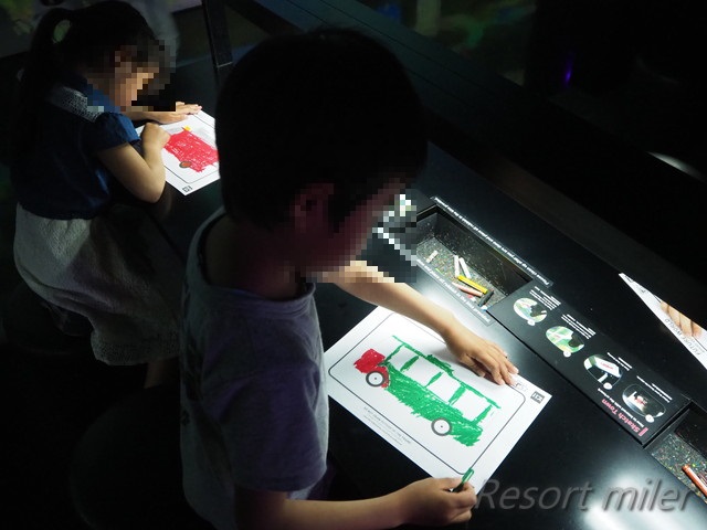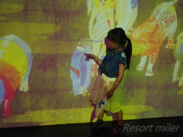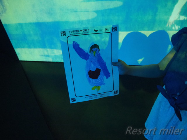 次のエリアは、自分の絵がスクリーンに映し出されるゾーン。