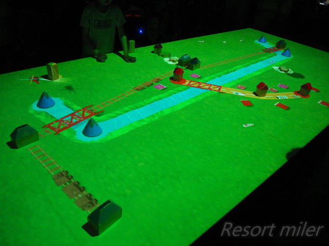 形の決まった積み木を配置すると、勝手に道路や川ができるゾーン。