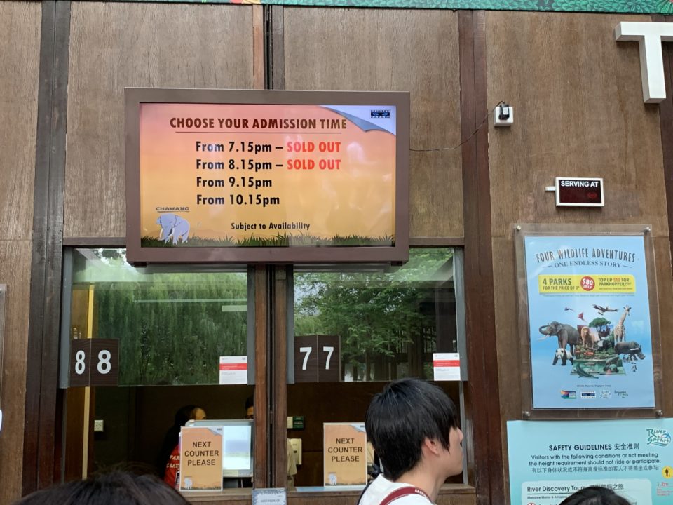 この時点で、シンガポール動物園に入場できるのは3時間半後の21時15分!