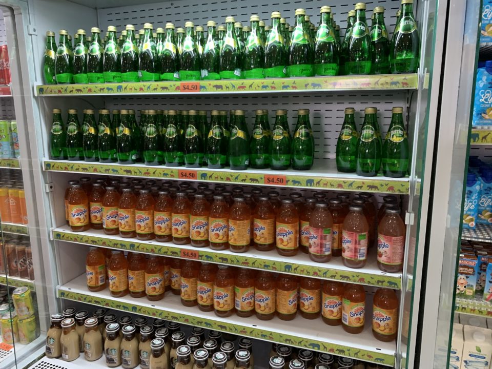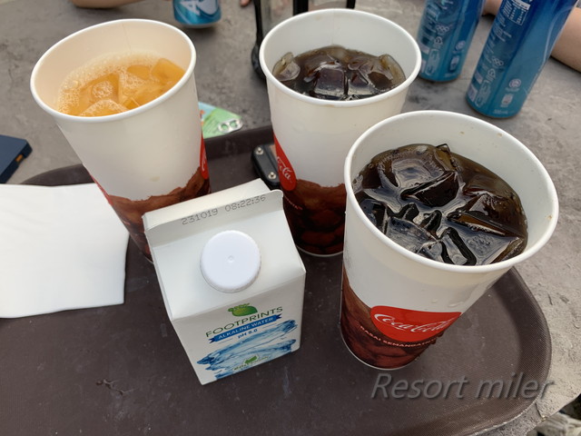 ここのドリンクは氷が入っています。冷たい飲み物が飲みたいときは、売店ではなくレストランで注文しましょう。