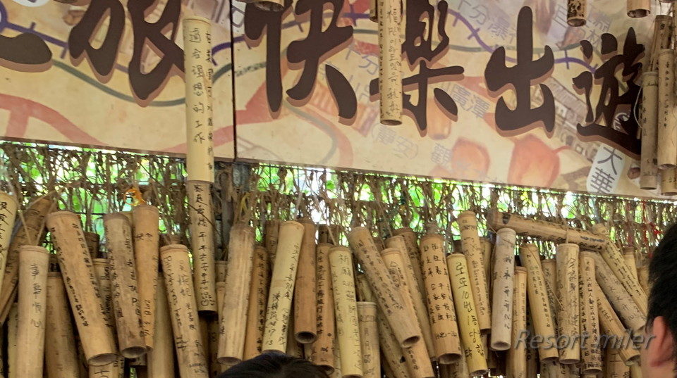 平渓駅はお寺のような感じ?願い事を書いた竹でいっぱいです。