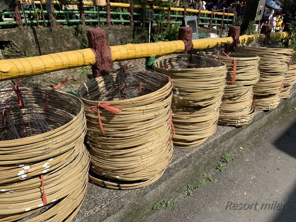 老街を先へ進むと、ランタンの材料がたくさん並べられていました。
