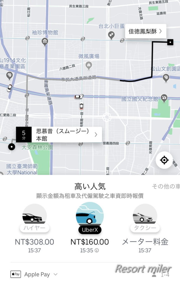 台湾ではUberが利用できます。