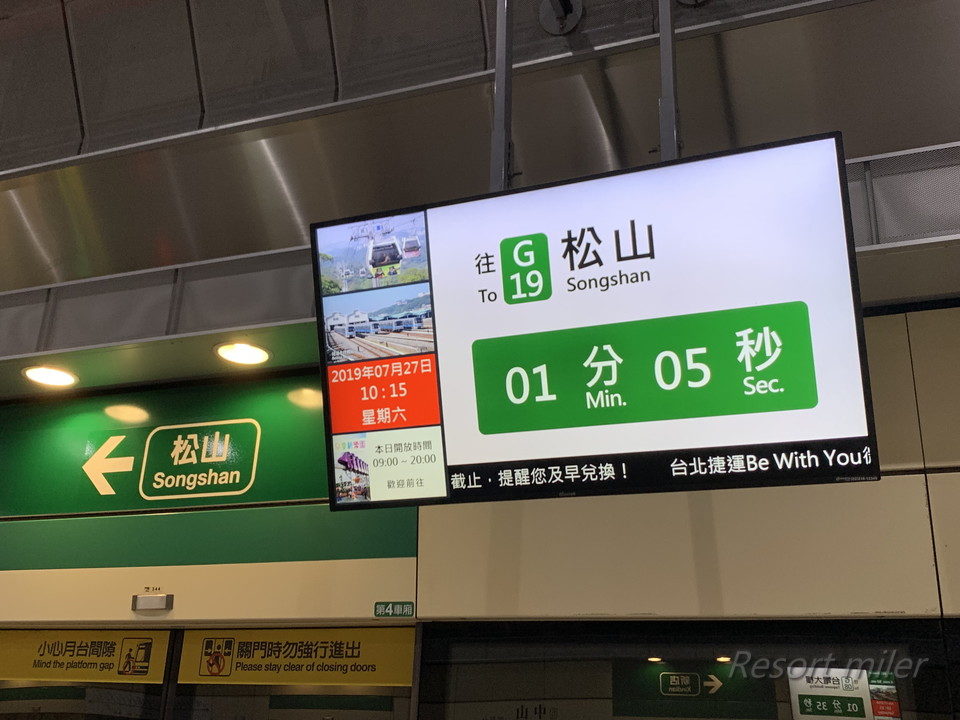 MRT中山からはMRT松山行きに乗ります。