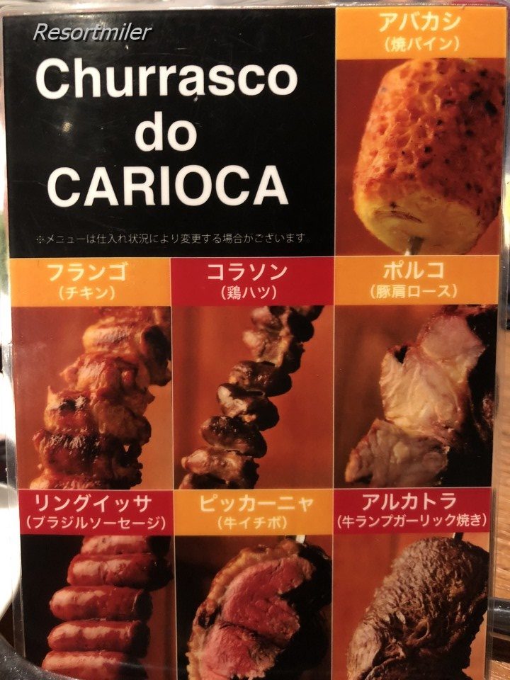 食べ放題のシュラスコは全部で7種類。最初に7種類が出た後は好きなお肉を注文できます。