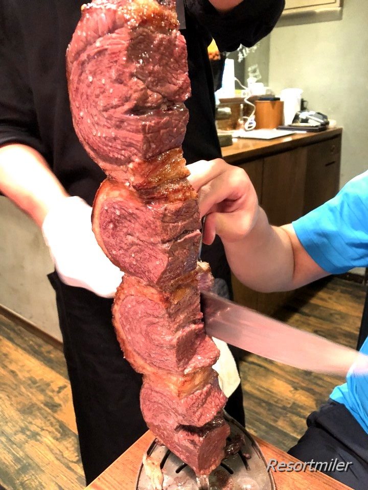 ピッカーニャもカット。お肉が食べたいお客さんもお手伝いします。
