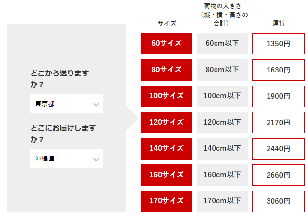 東京から沖縄まで、160サイズで2660円。