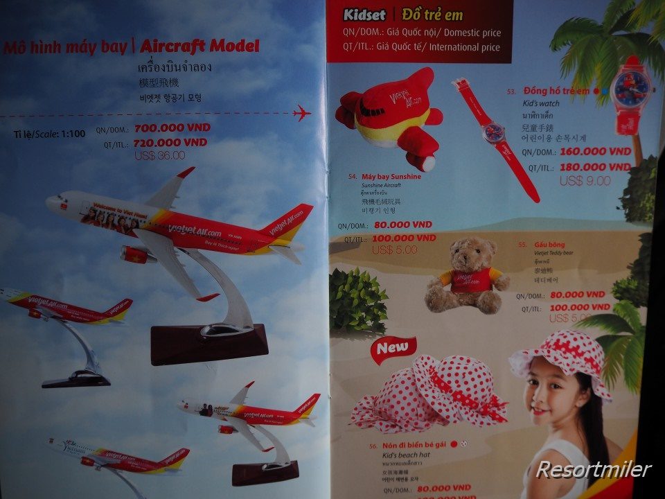 ベトジェットは機内販売の商品が激安でかわいい。今のところベトジェットの国際線では、ドンかドルしか使えませんが、もしかしたら日本線は日本円が使えるようになるかもしれません。