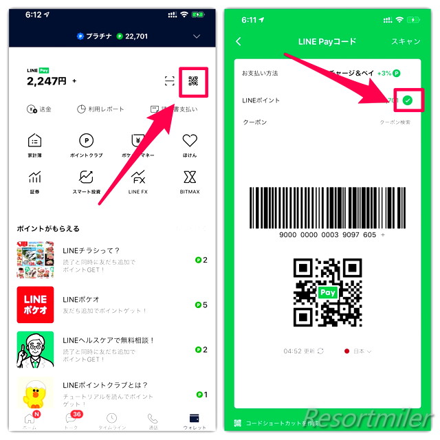 コード払いのときに、LINEポイントにチェックするだけ。簡単です。