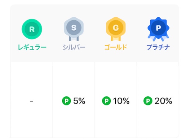 | プラチナ | 3% | 5000ポイント VISA LINE Payカードの紐付 |